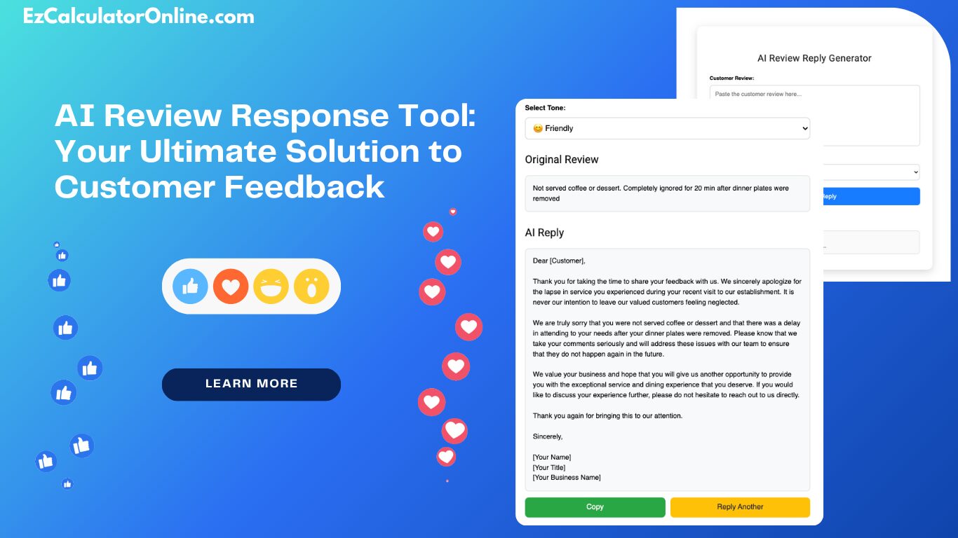 In today’s digital age, customer feedback is one of the most powerful ways for businesses to learn, grow, and improve. Every review—whether it’s a glowing compliment or a critical comment—offers valuable insight into how you’re doing. However, responding to customer reviews can be a time-consuming and daunting task, especially when you’re managing a small business. That’s where the AI Review Response Tool comes in—your smart, efficient assistant designed to help you craft the perfect reply to every review.
