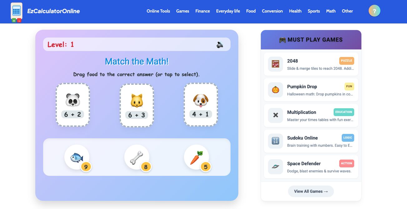 Welcome to the ultimate collection of free online math games at EZCalculatorOnline — where learning feels like play and every challenge builds real math confidence.